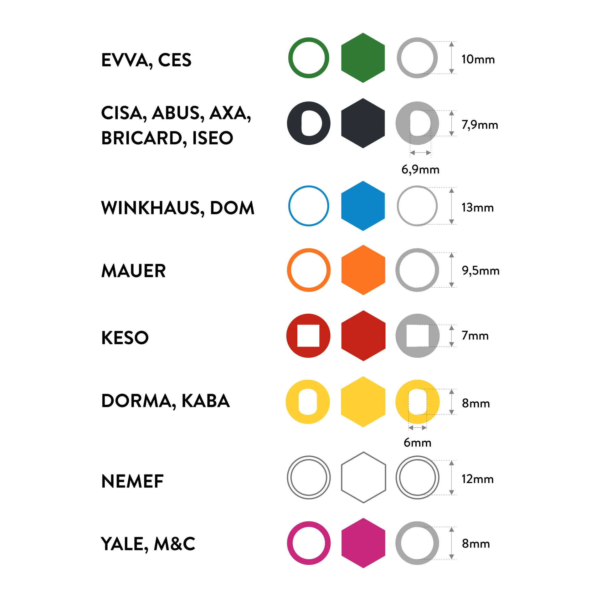 Nuki is compatible with knob cylinders of the brands Abus, CES, CISA, Dom, Dormakaba, EVVA, Keso, M&C, Mauer, Nemef